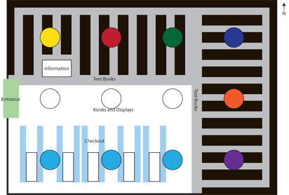 Human factors and usability task analysis and proposal for the University of Minnesota Bookstore. User observations, walk-throughs, and protocol analysis of key areas were used to discover visual, cognitive, decision making, and environmental human factors concerns. This data was used to create a task map and task framework before finally conducting a creative problem solving process to develop a proposal that addresses the discovered human factors concerns.