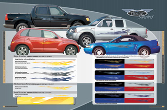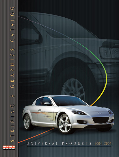 Universal Products produces a catalog every other year for their network of automotive graphic distributors and automotive customization shops to show to their customers. This catalog needs to show each vinyl graphic along available striping configurations and colors. My catalog design promotes the company’s products in a professional and stylish manner and shows the products in an intuitive, easy to understand layout. This catalog was well received by the distributors and customization shops.