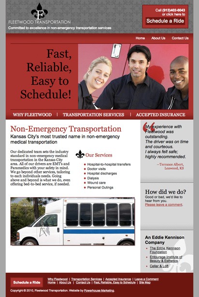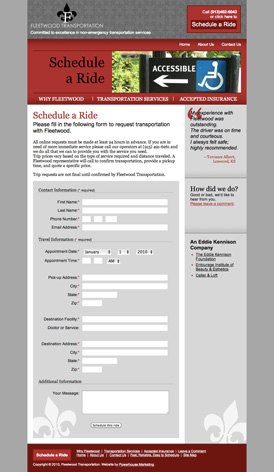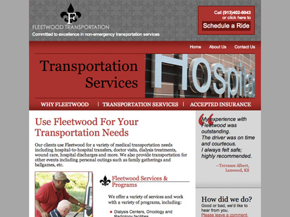 Design Objectives: The website’s primary goal is to provide a quick and easy way for clients to schedule medical transportation with the company and to communicate the company’s professionalism.
