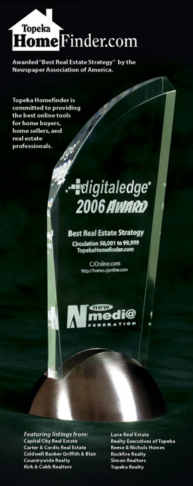 The design and concept of a series of newspaper, magazine, and website ads promoting the features and benefits of Topeka HomeFinder.com over area competitors. The occasional ad showing off our latest award attracted more attention by diverging from the campaign and by showing that national organizations recognized Topeka HomeFinder as one of the best in the nation.