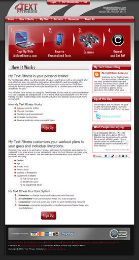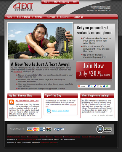 The owner of this new fitness business concept needed a easy to use website that allowed for adding content on a daily basis. This sporty looking website provides an easy to follow layout that directs potential customers to purchase membership and to get in shape. The integration of a blog and Twitter allows for the daily updating of content.