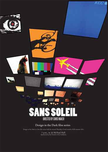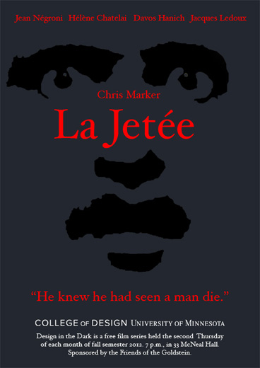 Project Description: In this assignment students design a poster for one of two films made by French film maker, Chris Marker. Instead of a planning for a prolonged contact with your audience, students now have to plan for making an immediate impression on the viewer and then draw them to the poster in order to take in the full details of their message. And then its over; the viewer is off to do other things, looking at other posters, catching an elevator, going to class, etc.