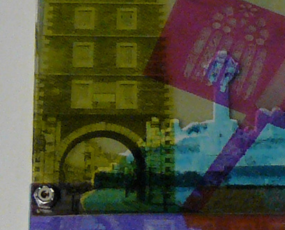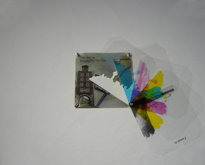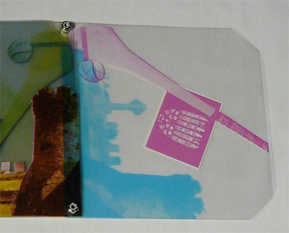 Materials: plexiglass, acitate sheets, laser print, screen print, nuts, & bolts